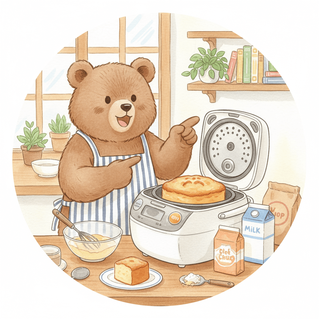 - 生地が多すぎる:内釜の高さを超える量を入れると、中心まで火が通りにくくなります。分量はレシピの80〜100%以内に調整すると安定します。