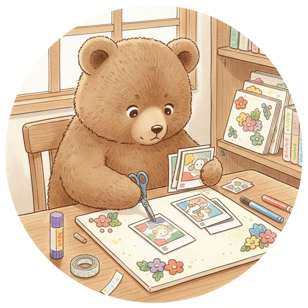 - テーマを決めて写真を選ぶ — どんな雰囲気にしたいのか明確にすると、写真の選び方やデザイン方針が安定します。テーマ例としては「思い出アルバム風」「ポップでにぎやか」「優しい手書き風」などがあり、ここを最初に決めるだけで制作が格段にスムーズになります。