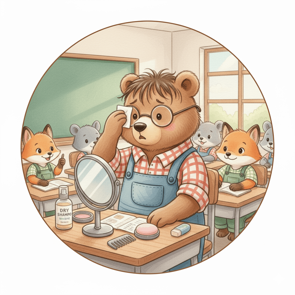 学校で前髪が油っぽくなったら、次の順番で対策するのがおすすめです: