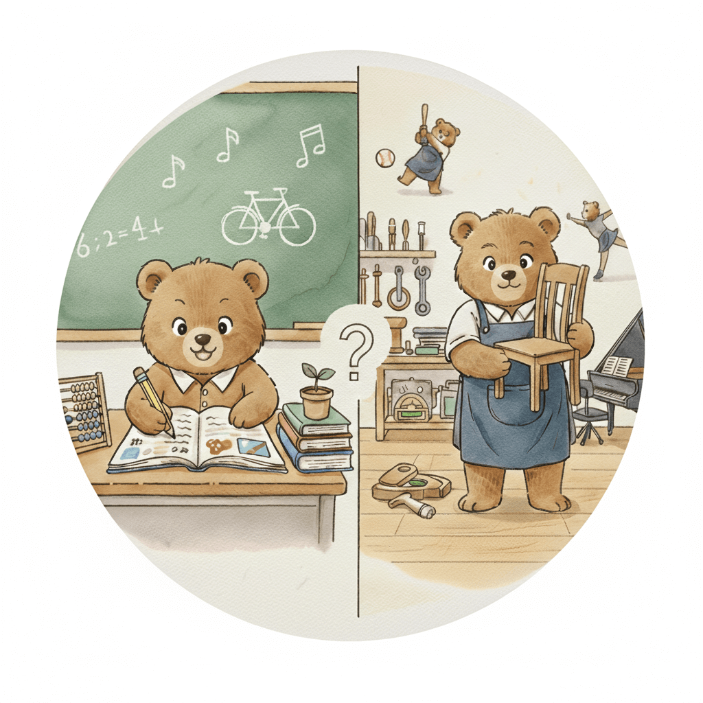 - 修得例:研究者が医学の専門知識を修得する。基礎医学の理解から始まり、臨床実習や学会発表を通じて理論と実践を結びつけ、数年をかけて高度な専門知識を修得する。