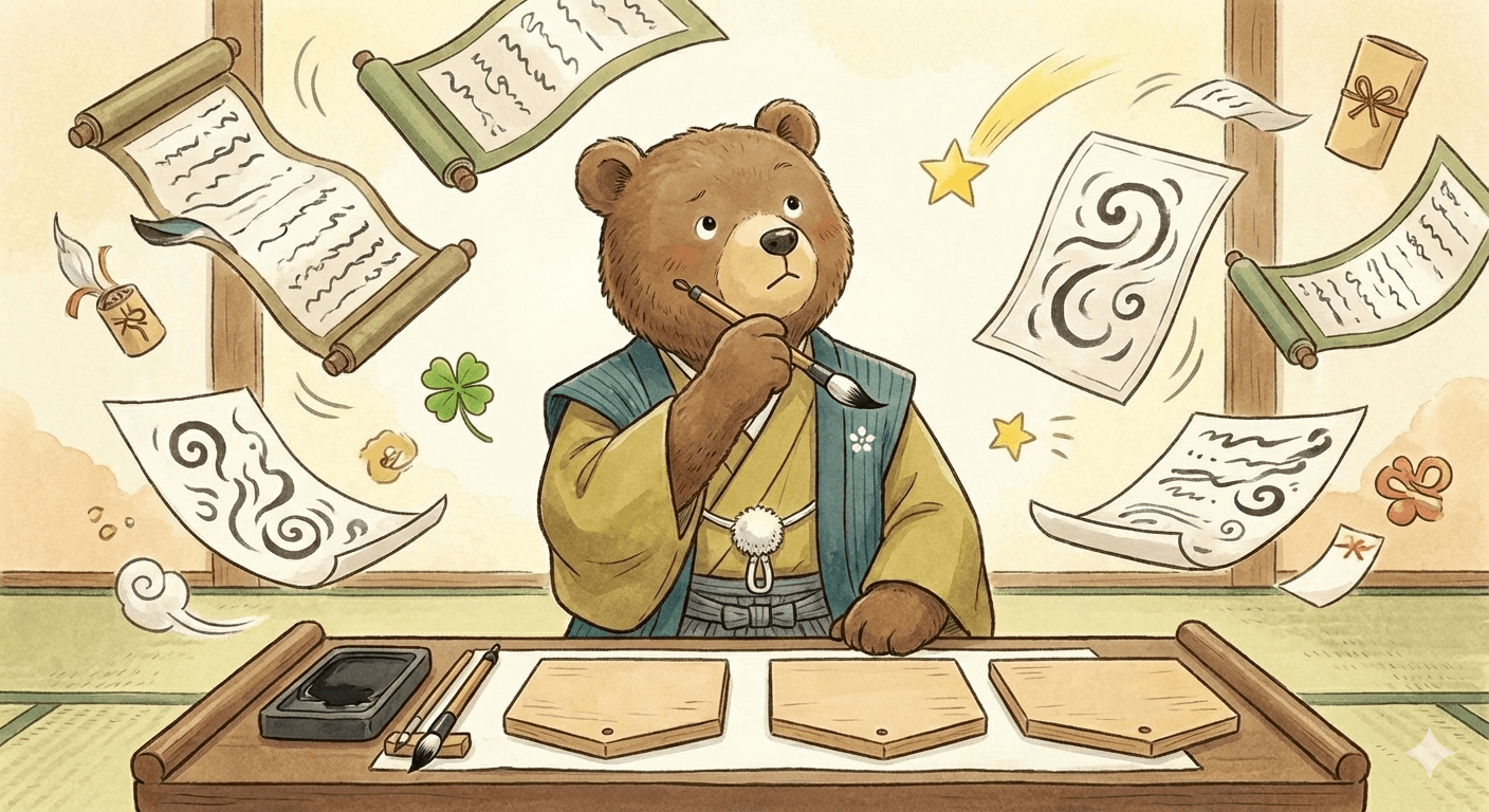 書くという行為は、単なる文字の再現ではなく、心と意識を整える深い儀式的な行動です。四字熟語を一文字一文字丁寧に筆で写すことで、心が静まり、思考が澄み渡り、自分の内側にある本当の願いに気づくことができます。特に写紙(写経のように言葉をなぞる行為)は、過去・未来ではなく「今この瞬間」に意識を集中させる瞑想効果を持ち、マインドフルネスの向上や精神の浄化に大きく役立ちます。