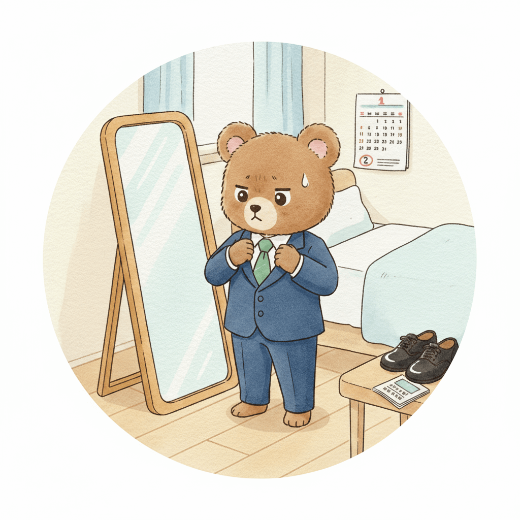 - ネクタイや小物、時計も服装に合っているか最終確認